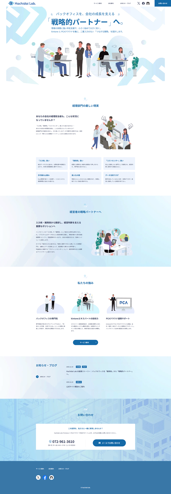 - PCA×kintoneで全社の業務データを連携。現場で培った連携ノウハウをもとに、業務改善支援を行う「Hachidai Lab.」も設立。