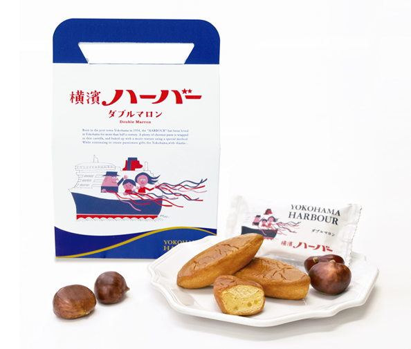 船と港町横浜を愛してやまない柳原良平画伯でお馴染のオリジナルパッケージで、船の形をかたどった、人気の定番マロンケーキです。