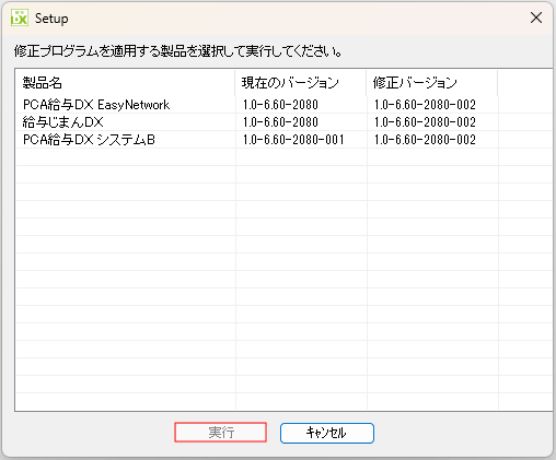 - 複数のエディションがインストールされている場合は選択画面が表示されますので、お使いの製品を選択後、「実行」ボタンをクリックします。