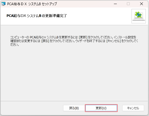- 更新準備完了の画面が表示されますので、「更新」をクリックします。