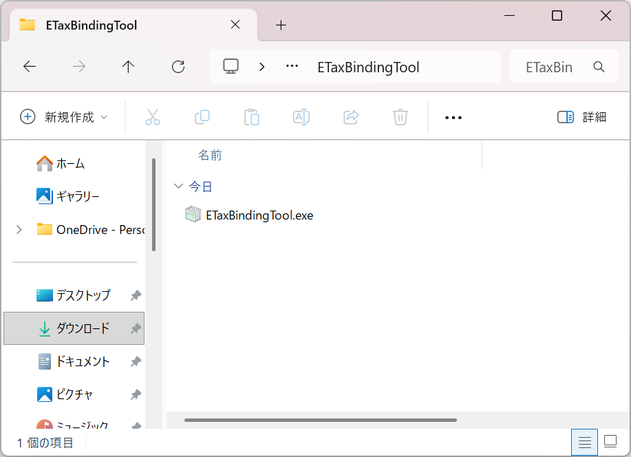 - 展開したフォルダ内の“ETaxBindingTool.exe”を実行します。