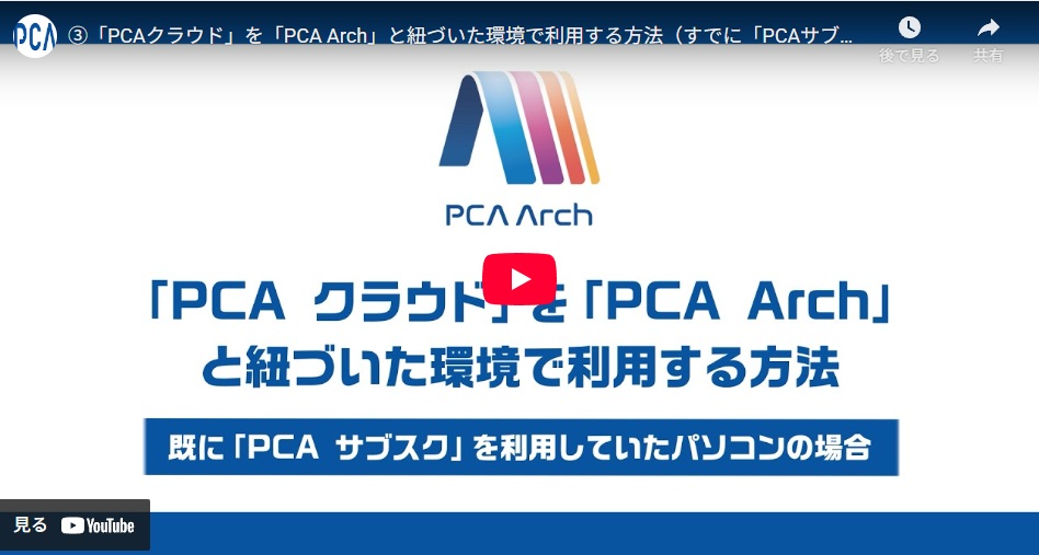 プログラムのDLを行う際のURLは体験申し込みを行った際に登録したメールアドレスに届いている「PCA Arch利用通知書のご案内」メールの本文に記載されている「『PCAクラウド』プログラムのインストールについて」に製品ごとに記載がございます。詳細は動画にてご確認ください。