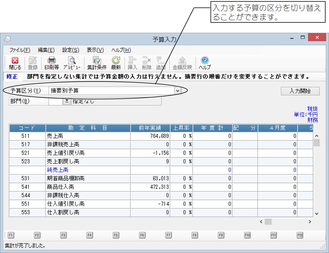 予算は、メニューの「予算・実績」-「予算区分の設定」で“予算1”~“予算30”の30種類が設定できます。