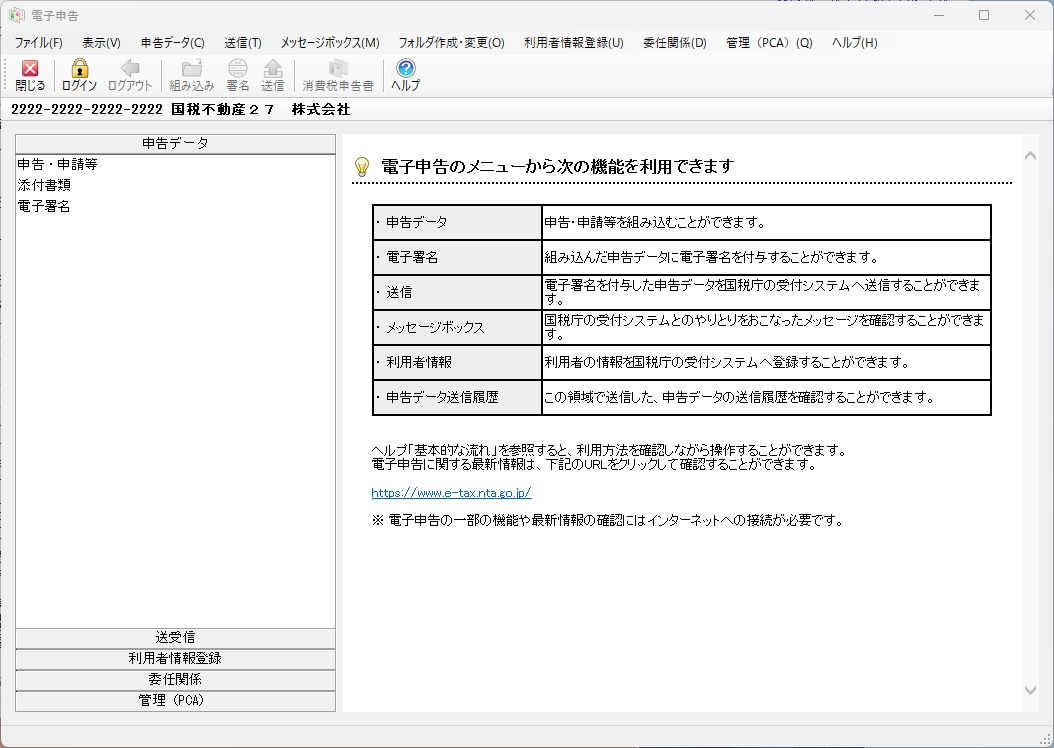 利用者情報:利用者の情報を国税庁の受付システムへ登録することができます。