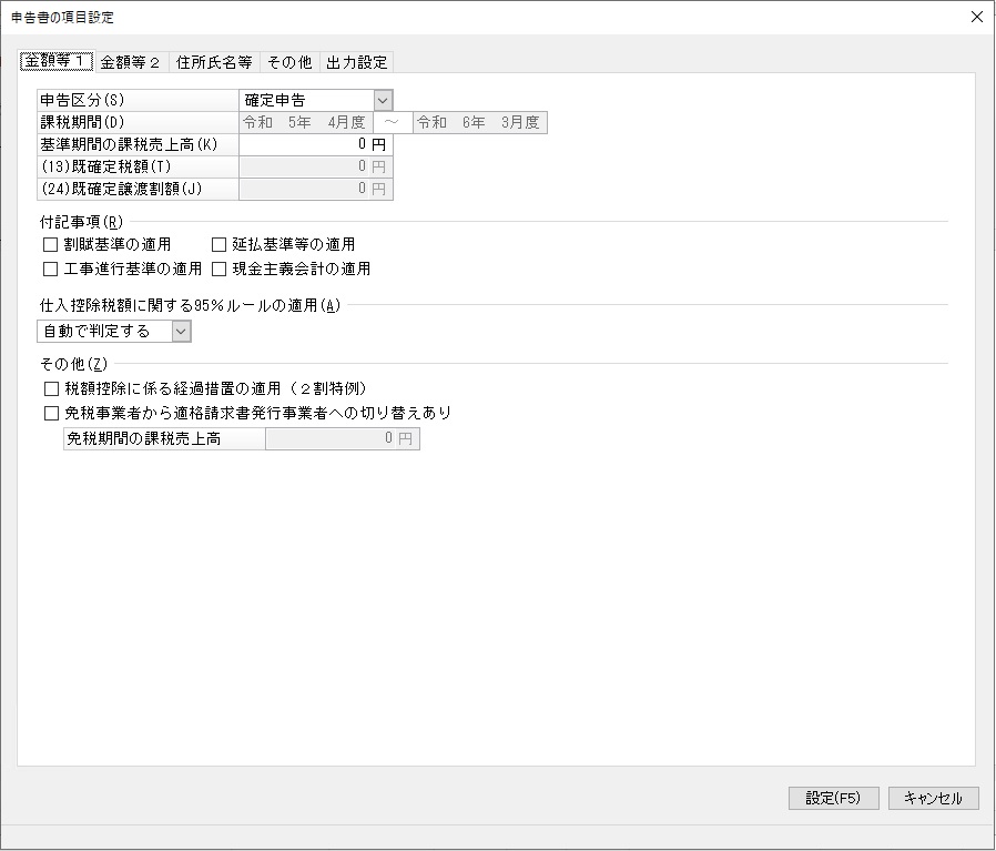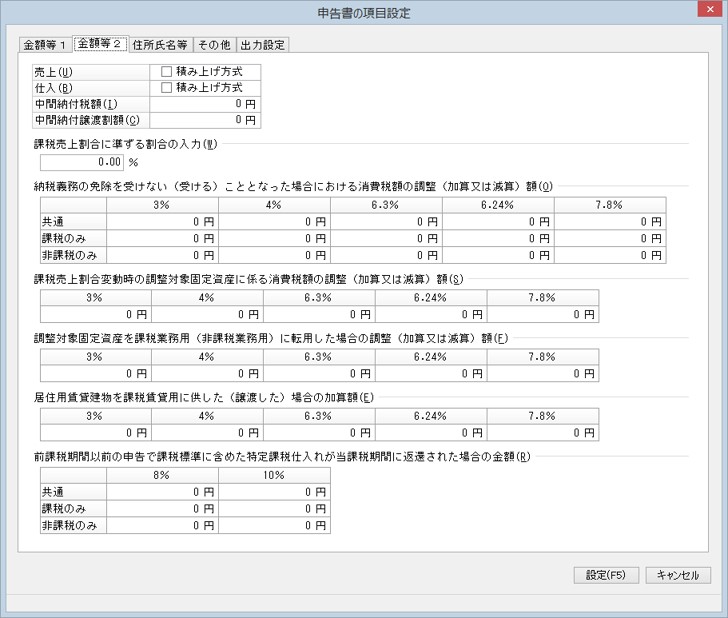 【「申告書の項目設定」-「金額等2(一般課税)」タブ】