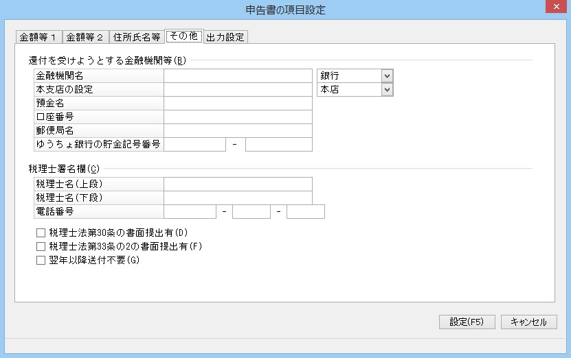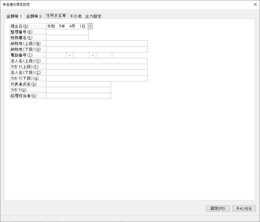 【「申告書の項目設定」-「住所氏名等」タブ】