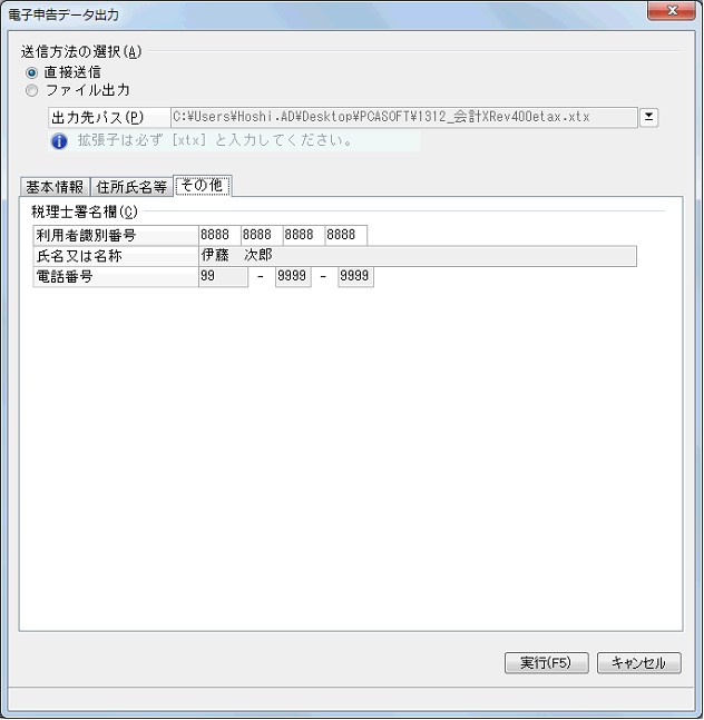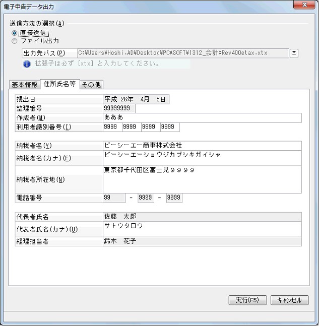 【「電子申告データ出力」-「住所氏名等」タブ】