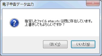 既存のデータを残すために、出力先とファイル名を指定し直す場合は、[いいえ]ボタンをクリックします。