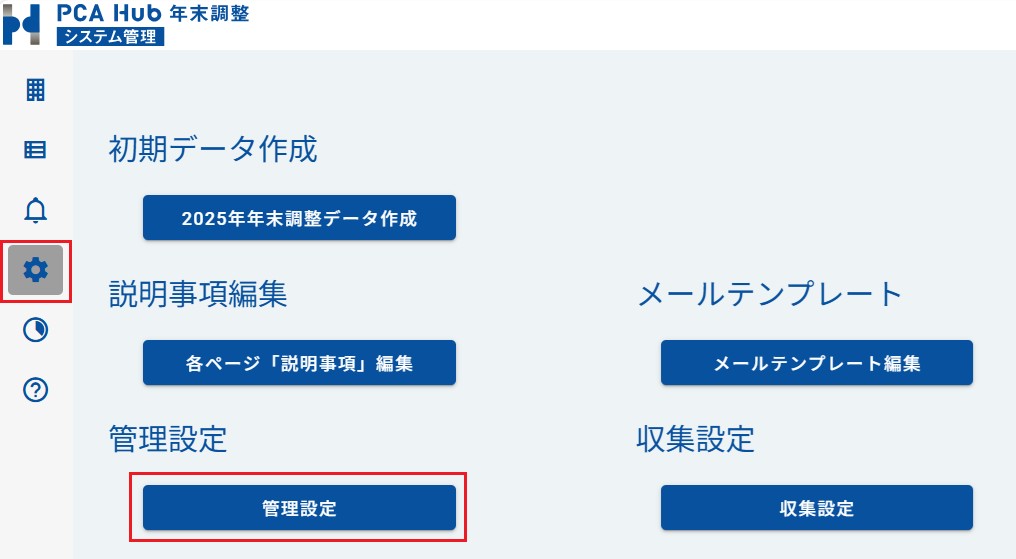 PCA Hub との連動設定は PCA Hub 年末調整のシステム管理者のみが行うことができます。