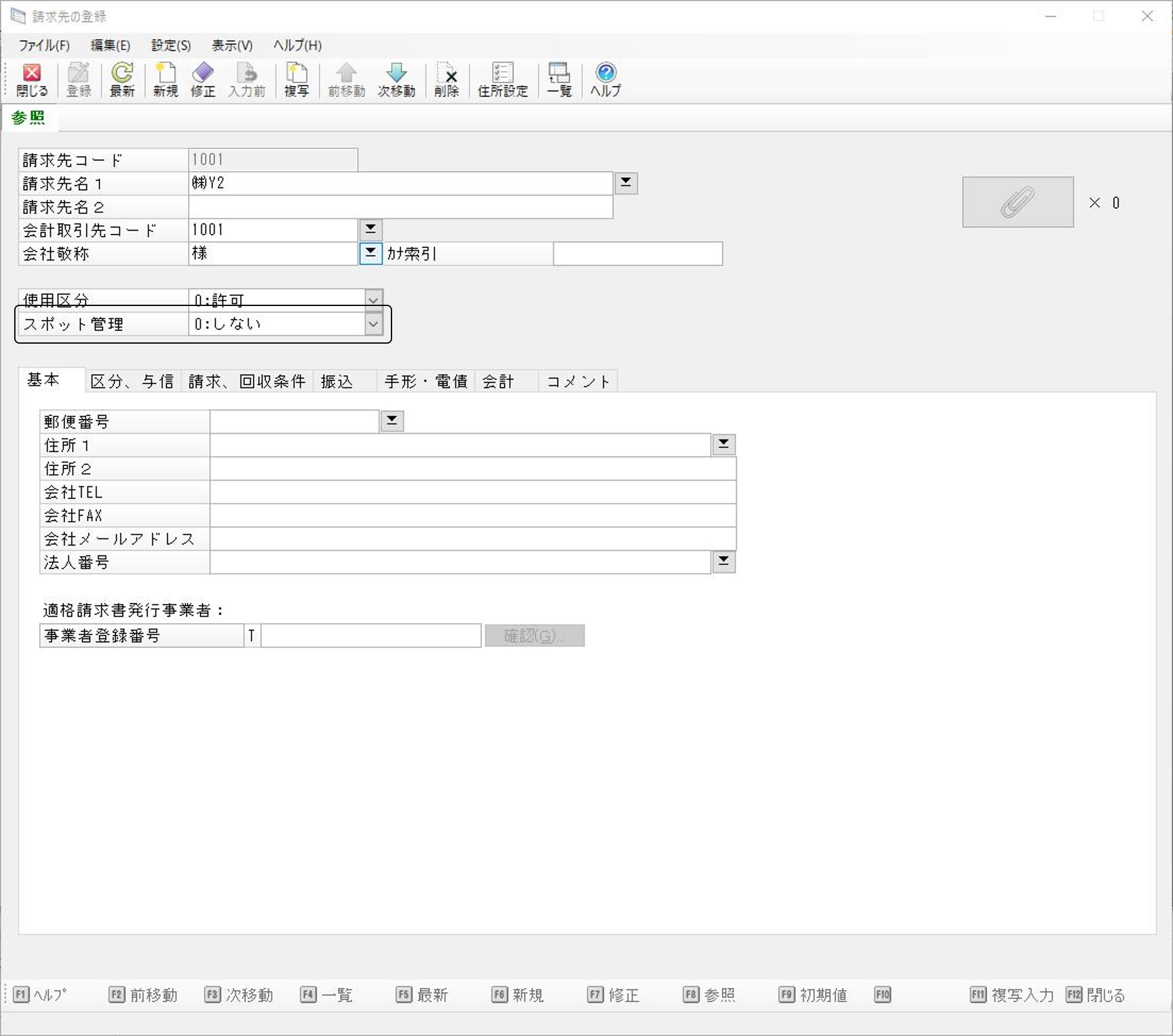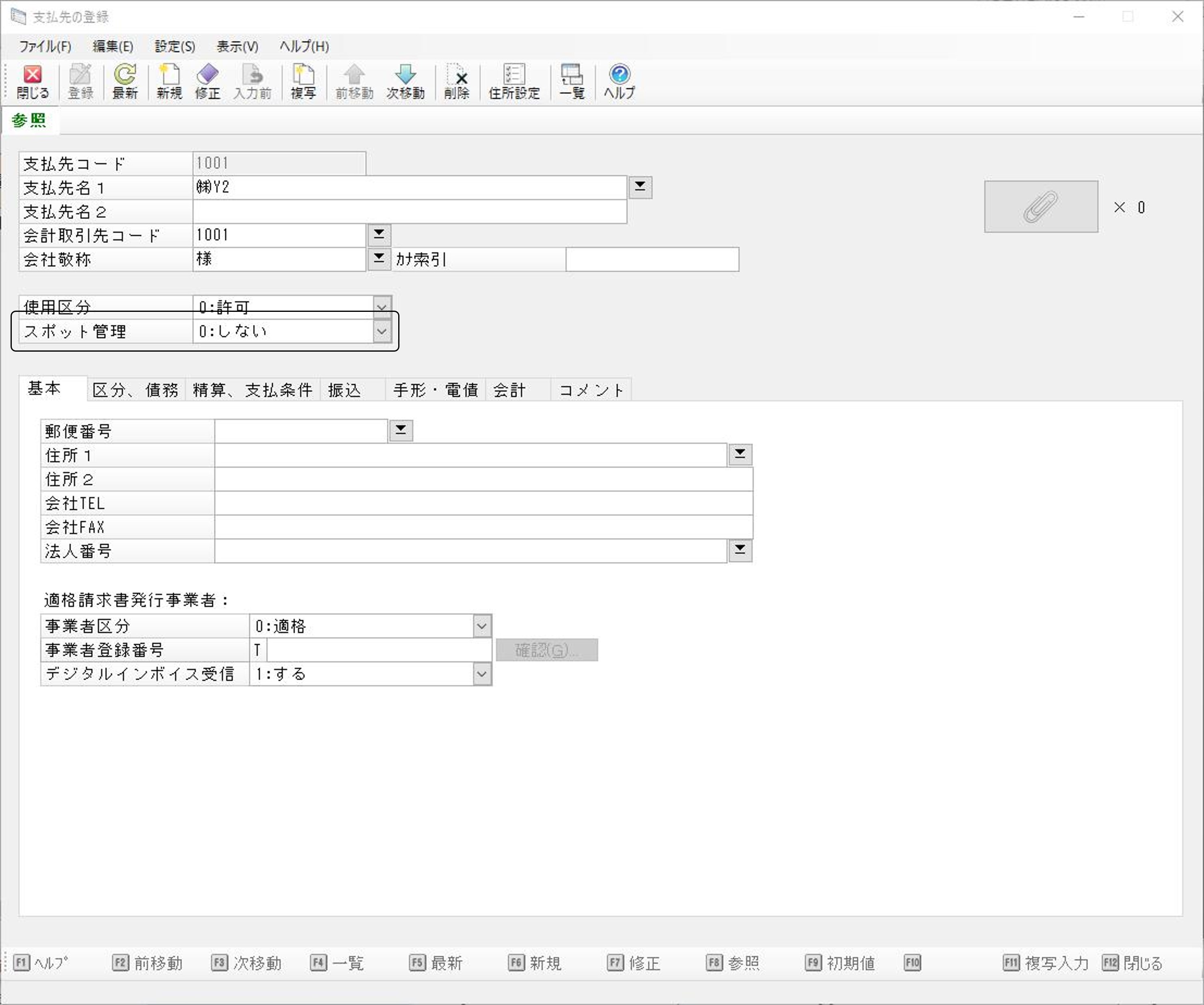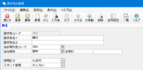 「スポット管理」を「する」に設定した請求先、支払先で伝票を登録後、請求先、支払先のスポット管理を「しない」に変更することはできません。