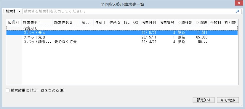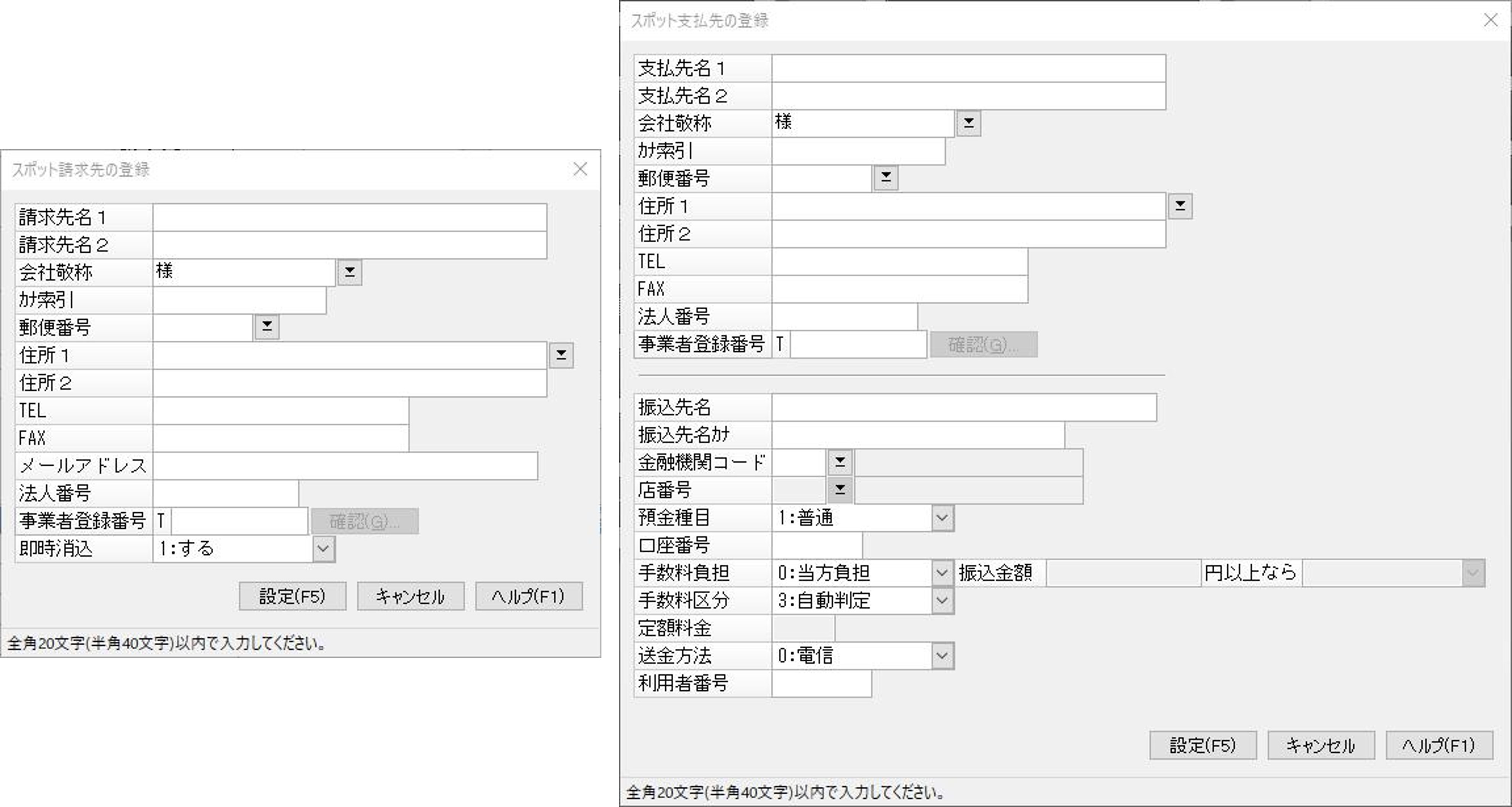 スポット請求先、スポット支払先とは、伝票登録時にスポット取引先として登録された相手を指します。