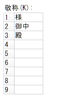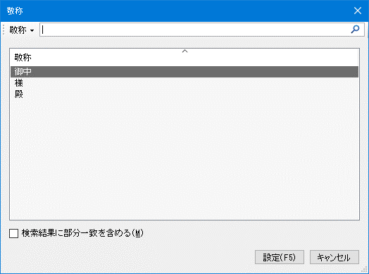 敬称の入力時、入力欄右の参照ボタンをクリックすると敬称参照画面が開きます。