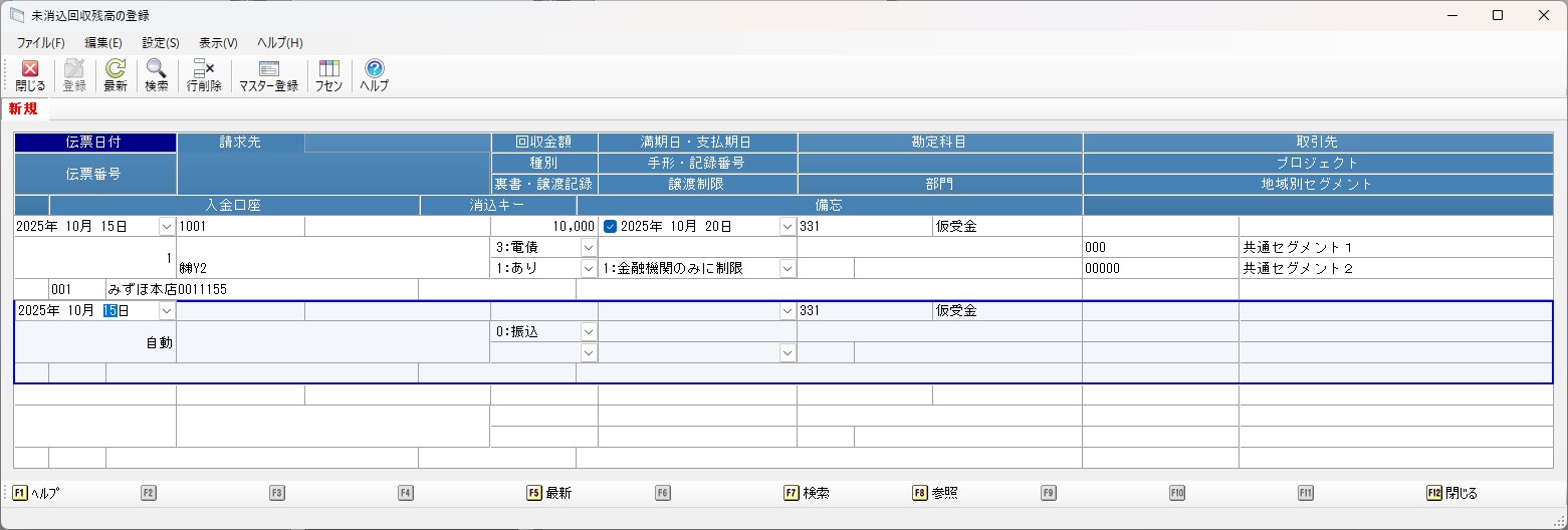 未消込回収残高の登録