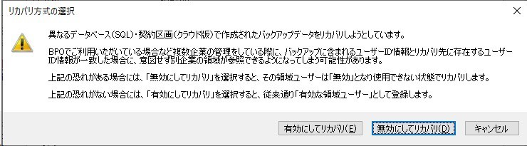 ※ 「有効にしてリカバリ」を選択した場合は、ユーザーIDが重複していても従来通りにリカバリを実行します。