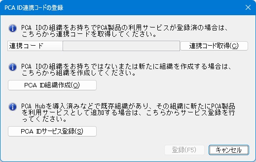 (4) 「PCA ID連携コードの登録」画面が表示されます。
