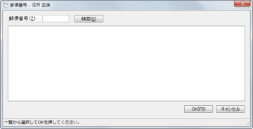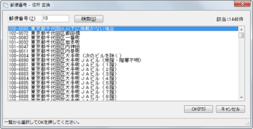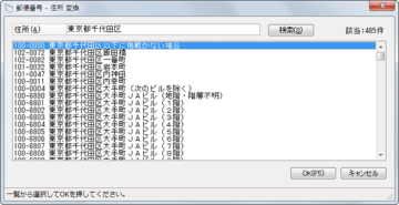 (1) 郵便番号欄のボタンをクリックすると、「郵便番号-住所 変換」画面が表示されます。