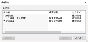 (2) 条件読込画面が表示されますので、使用したい条件を選択して、[反映]ボタンをクリックします。