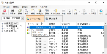 ※ 画面は「固定資産台帳(一)」を表示しています。