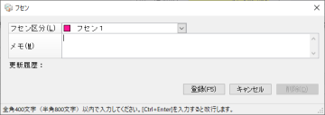 (3) フセン区分を選択し、メモを全角400(半角800)文字以内で入力します。