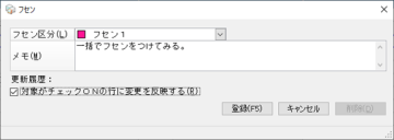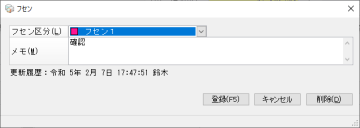 (4) フセンを付ける場合は、[登録]ボタンをクリックします。
