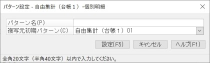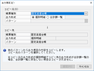固定資産台帳(一)で帳票種別が「自由集計(台帳1)」の場合には、複写元初期パターンを選択します。