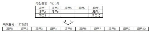 ※ 列ごとに上から下へと、最初の列から順番に、配置されていない箇所は飛ばして配置されます。