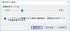 メニューバーの「設定」-「印刷文字サイズ」を選択すると、「印刷文字サイズ設定」画面が表示されます。