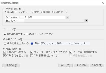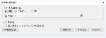 条件指示後、「出力先の選択」で“印刷”“プレビュー”等を選択し、[実行]ボタンをクリックします。