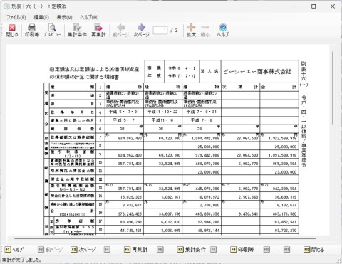 ツールバーの[再集計]ボタンをクリックすると、申告書、台帳・一覧、予定額一覧を再集計します。