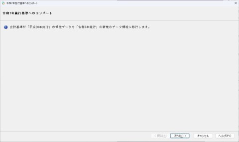 メニューの「ファイル」-「令和7年施行基準へのコンバート」を選択すると、以下のような画面が表示されます。