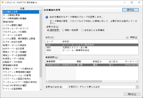 →「システムツール」-「共通」-「会社構成の変更」を実行します。