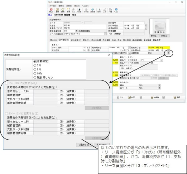 令和1 年10 月1 日から適用される消費税率の8%から10%への変更により、リース資産の消費税率を変更する必要があります。