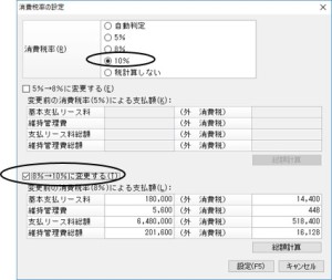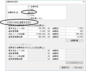 ※ リース期間の途中において消費税率を変更する場合は「5%→8%に変更する」「8%→10%に変更する」にチェックを付けてください。