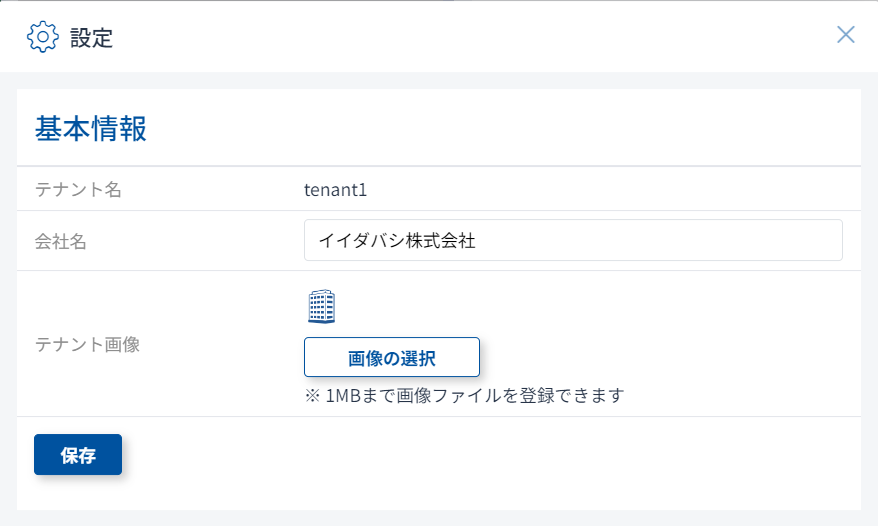 (1) 会社名・ロゴ画像を変更する事ができます。設定後「保存」をクリックします。