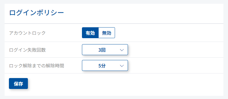 不正ログインからアカウントを守るための設定を行います。設定後「保存」をクリックします。