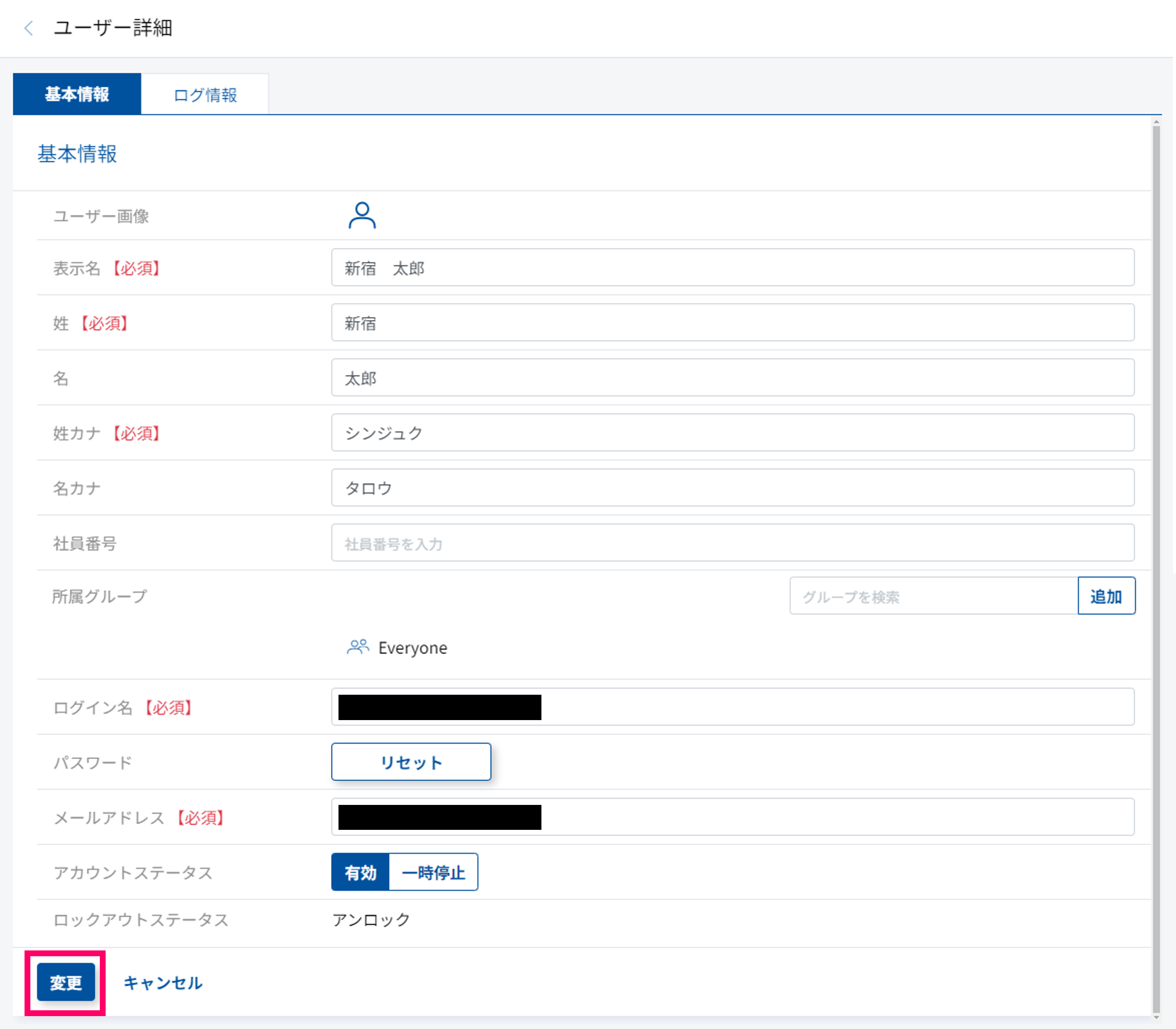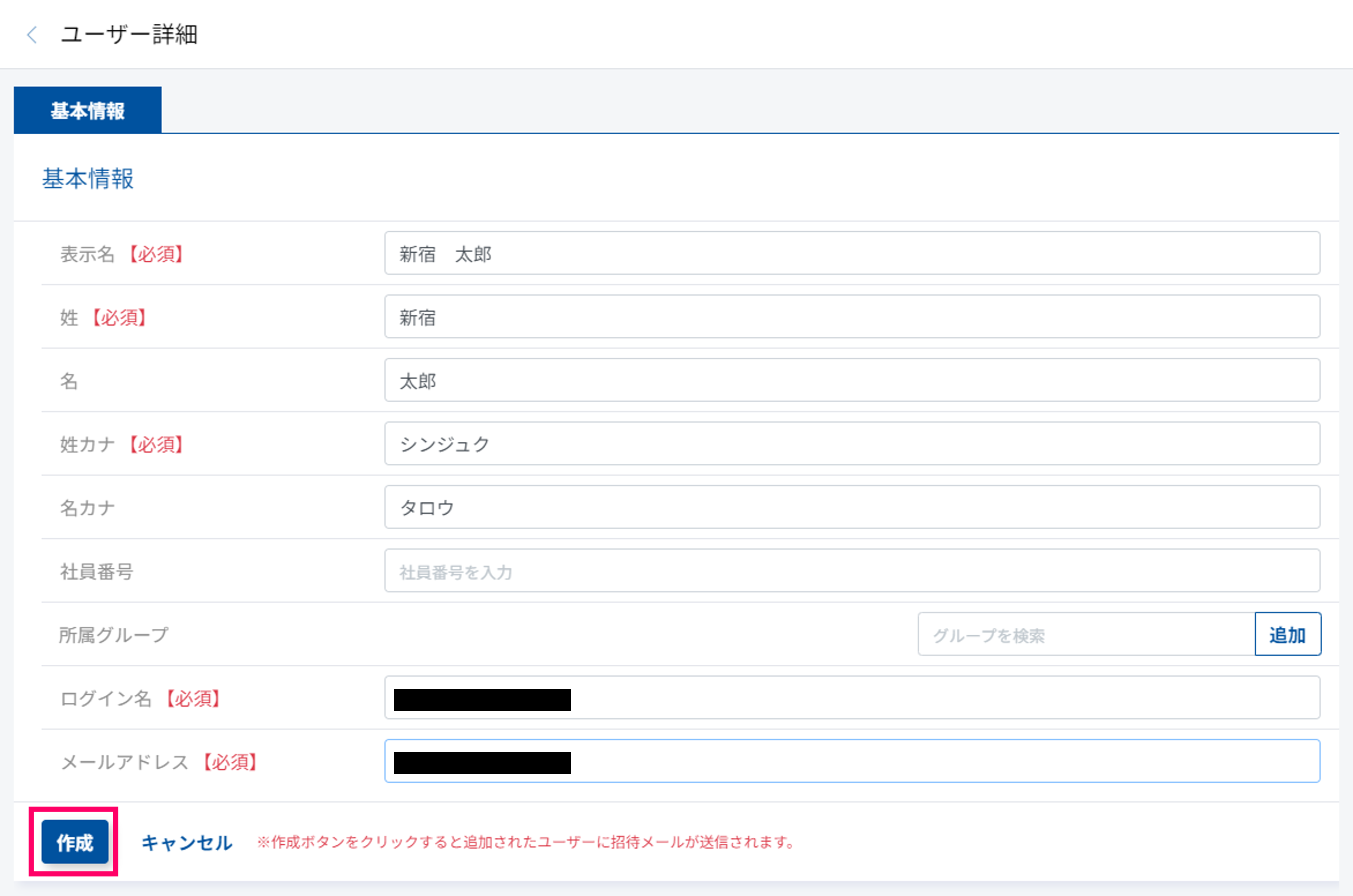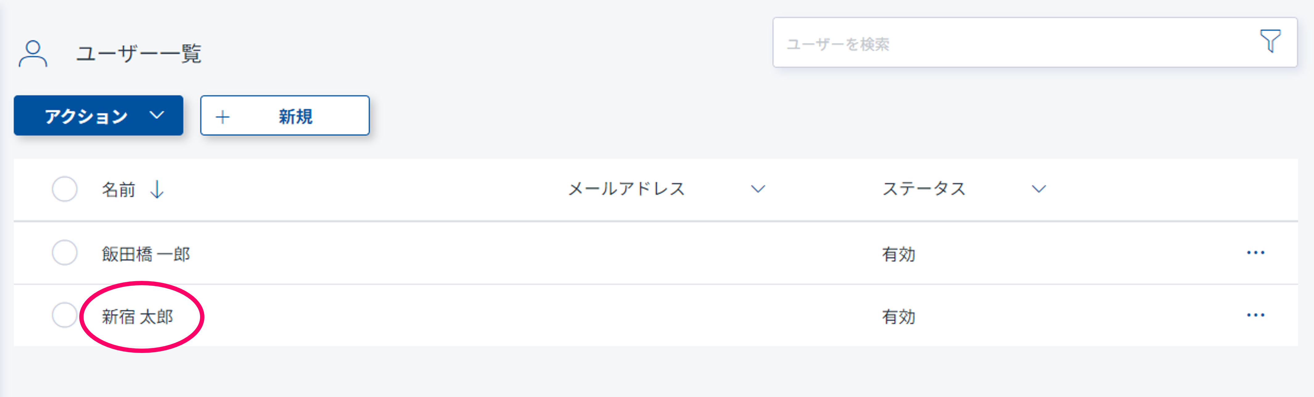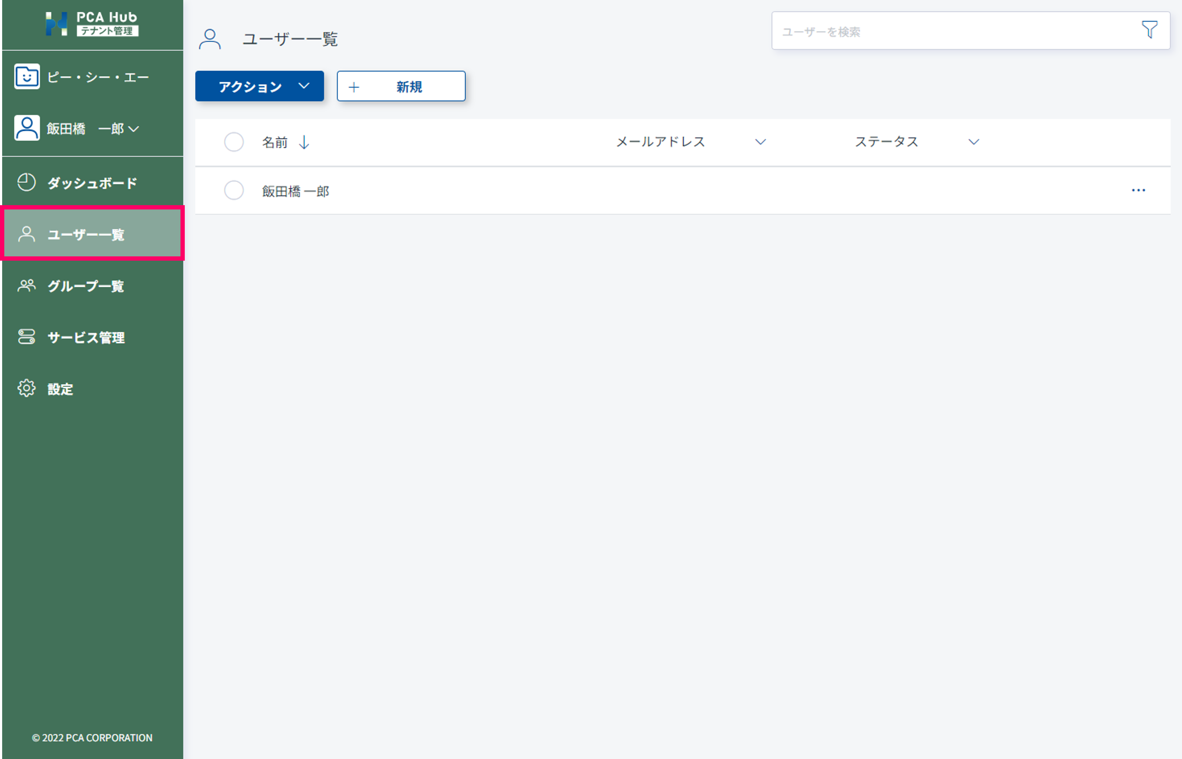 テナント管理メニューの「ユーザー一覧」をクリックします。