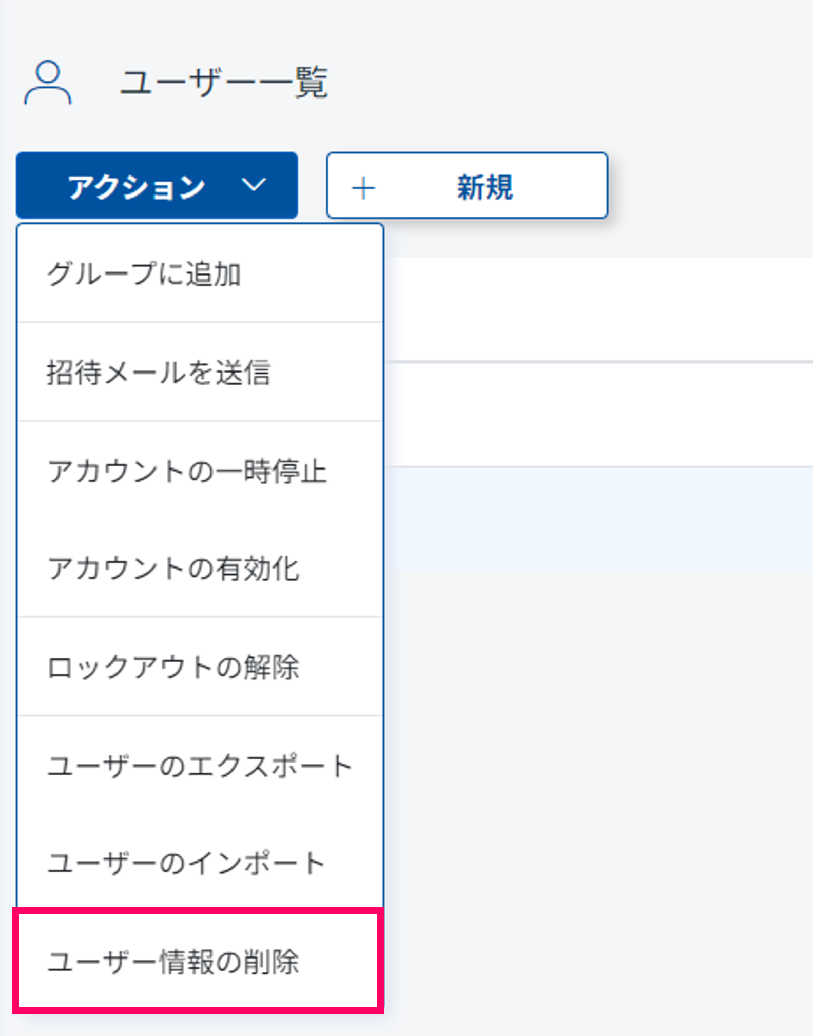 (2) アクションから「ユーザー情報の削除」を選択します。