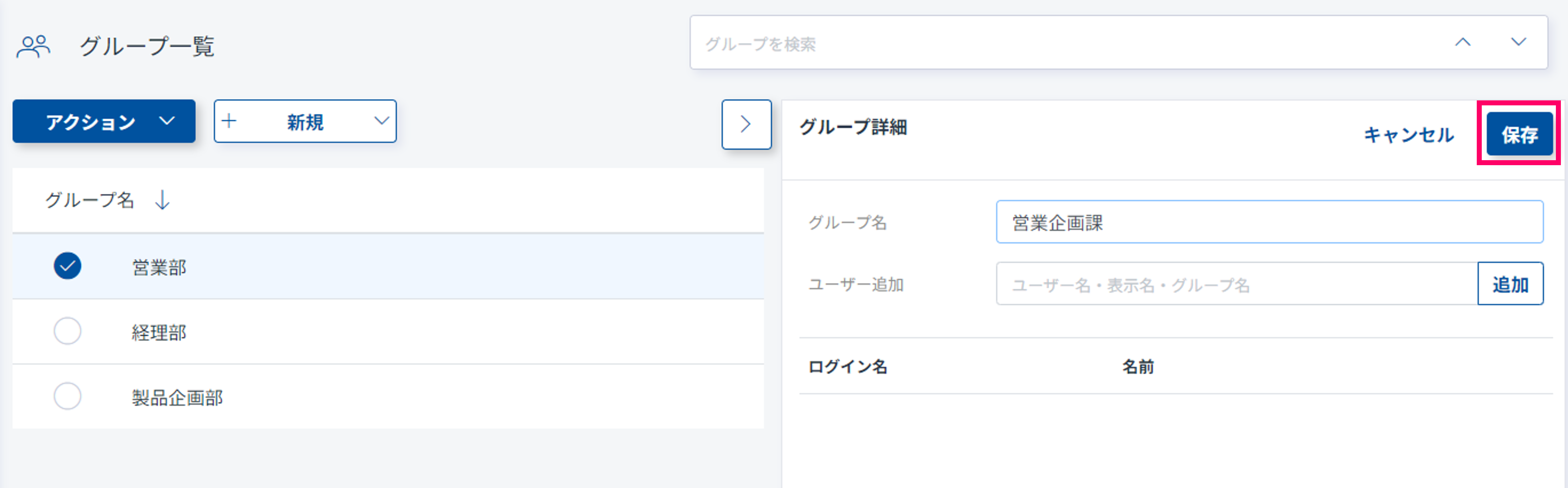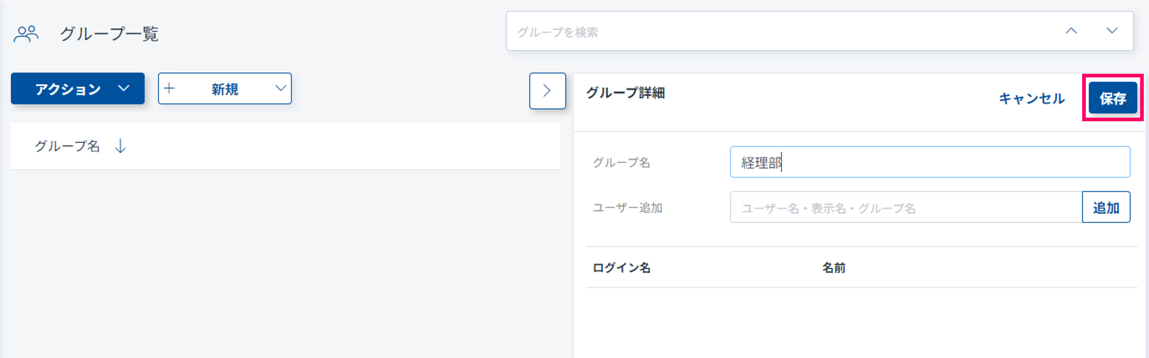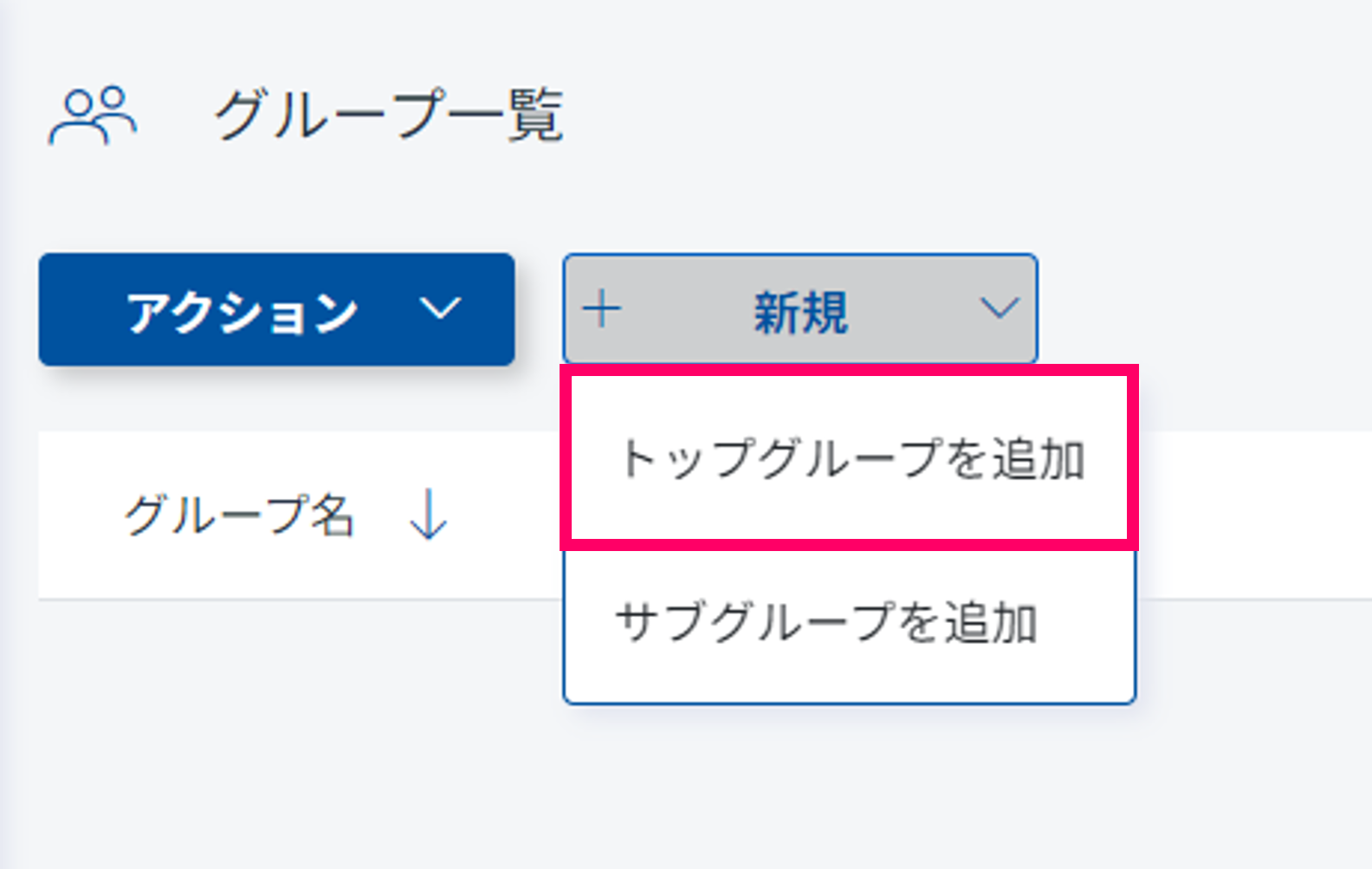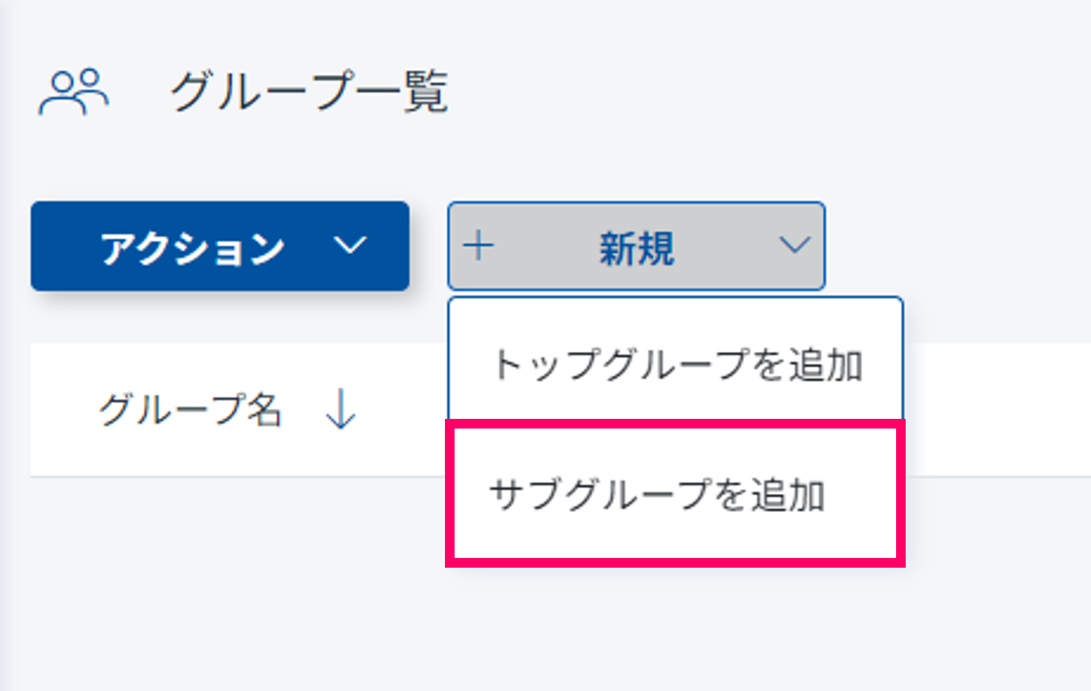 (4) 新規から「サブグループを追加」を選択します。サブグループ名を入力して、「保存」をクリックします。