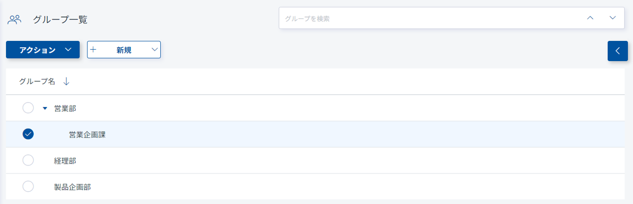 「トップグループ」と「サブグループ」の階層構造になります。階層は最大で5階層まで構造化することができます。