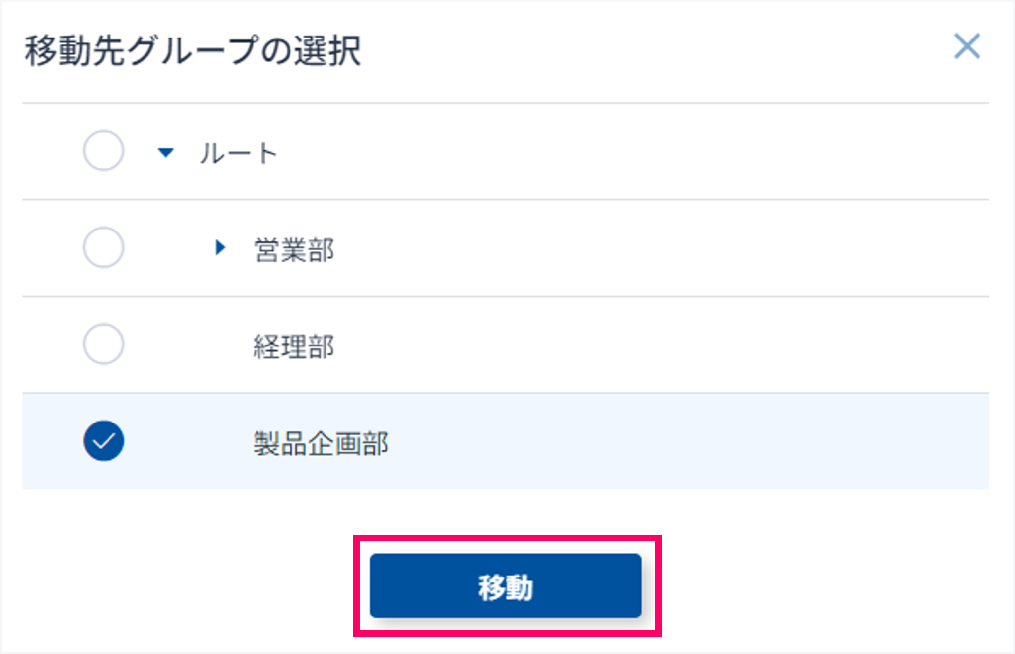(3) 移動先のグループをチェックして「移動」をクリックします。