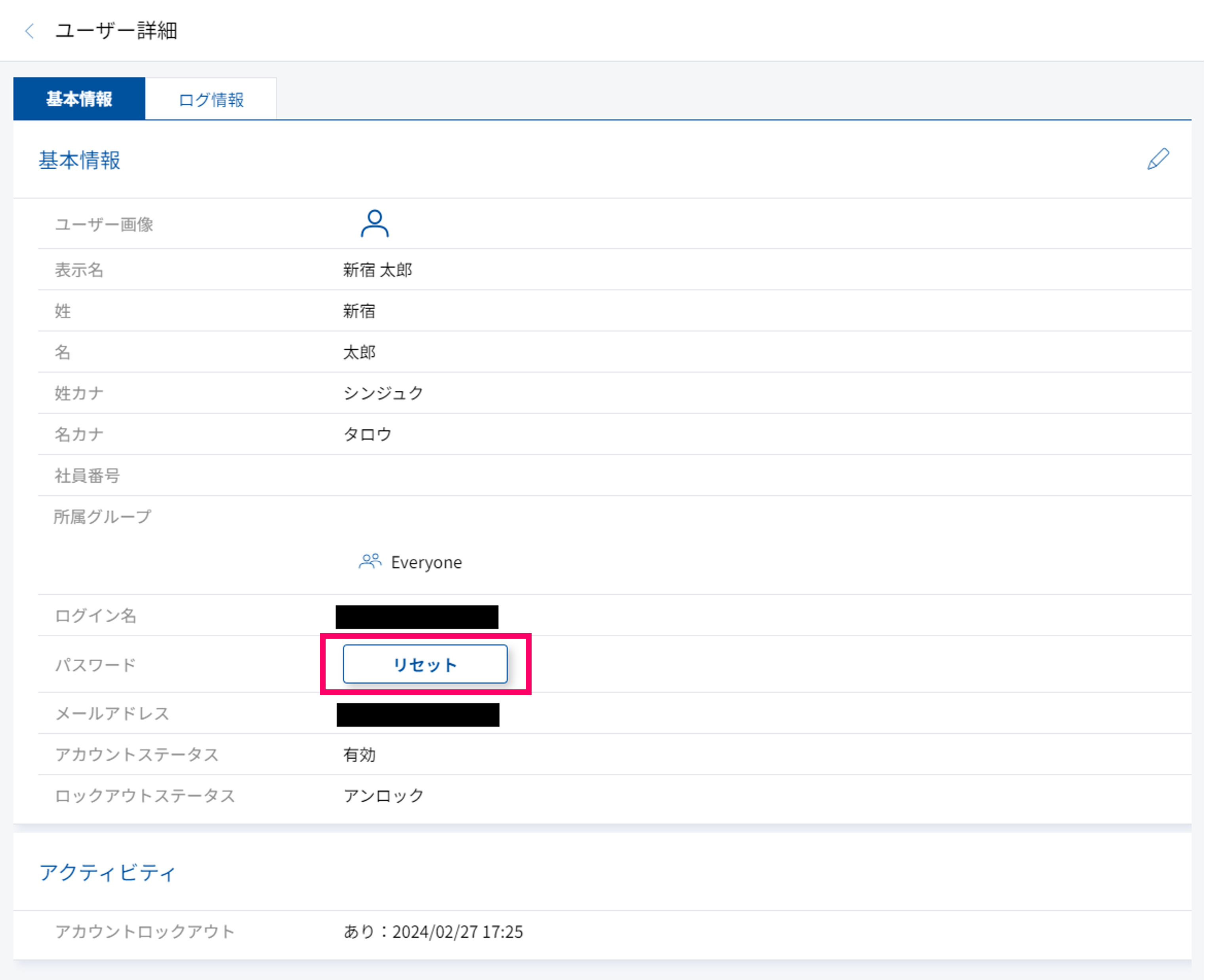 パスワードのリセット