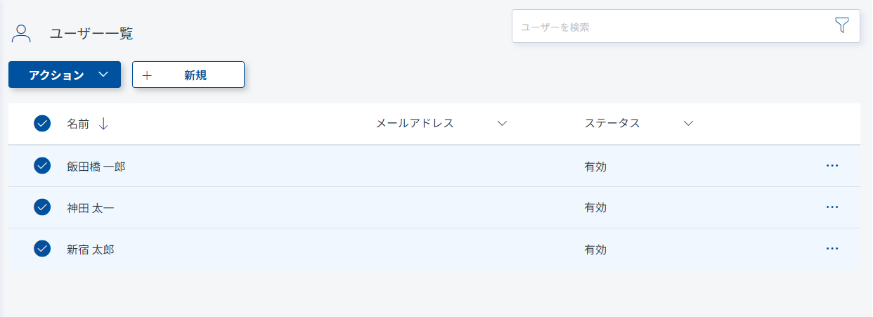 テナント管理メニューの「ユーザー一覧」をクリックします。