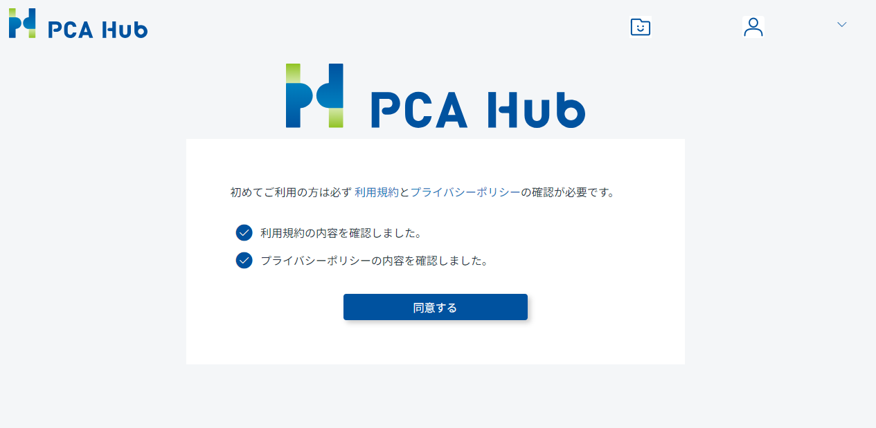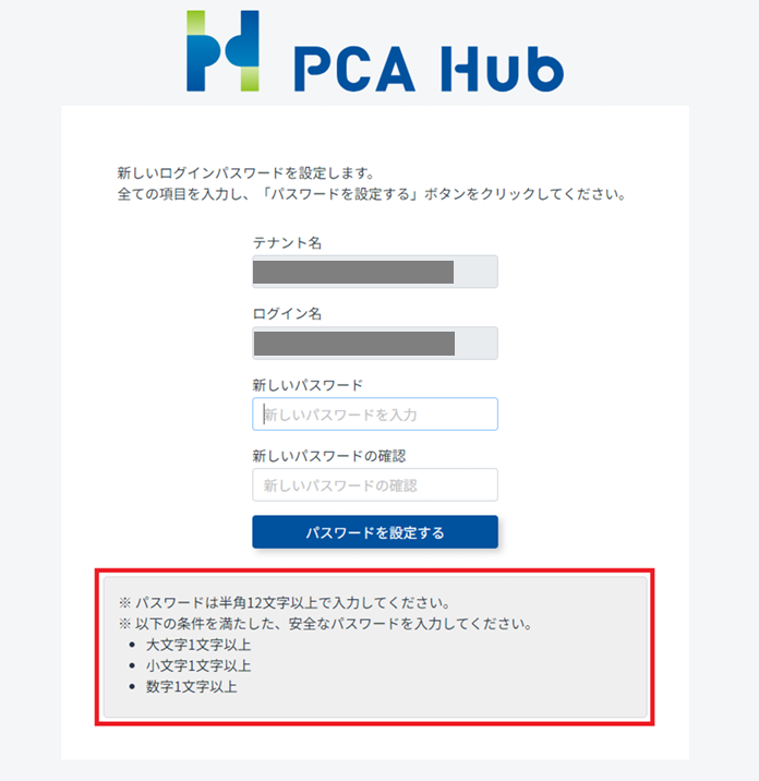 PCA Hubサービスにはじめてログインする場合の操作手順です。