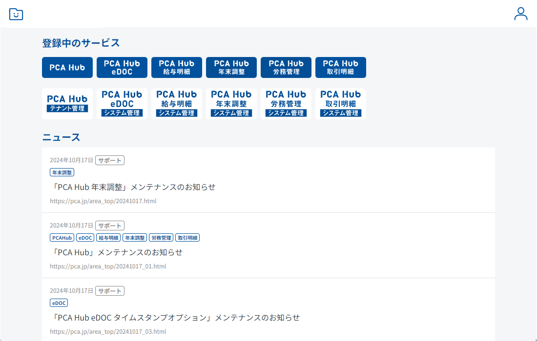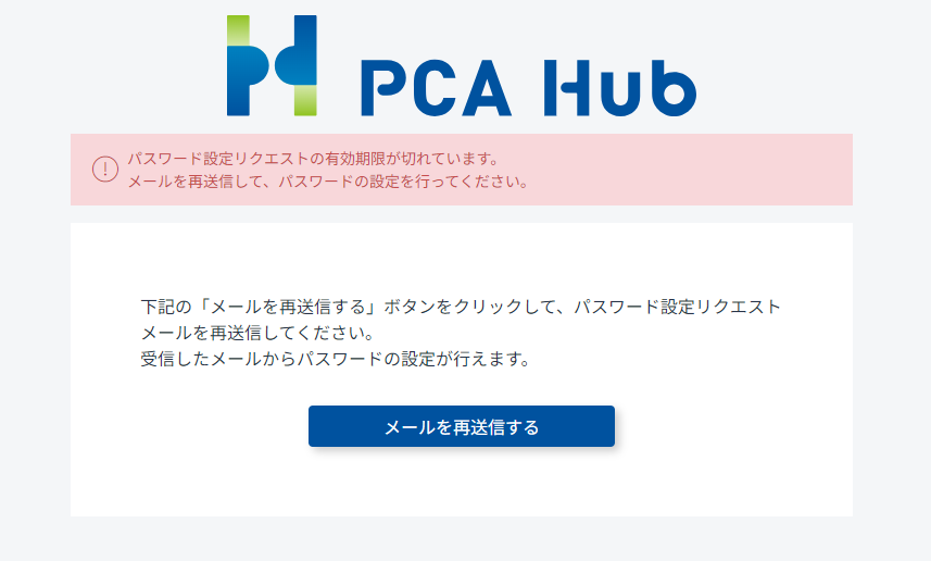 ログイン画面が表示されない場合は、「【PCA Hub サービス】パスワード設定完了のお知らせ」メールのURLをクリックします。