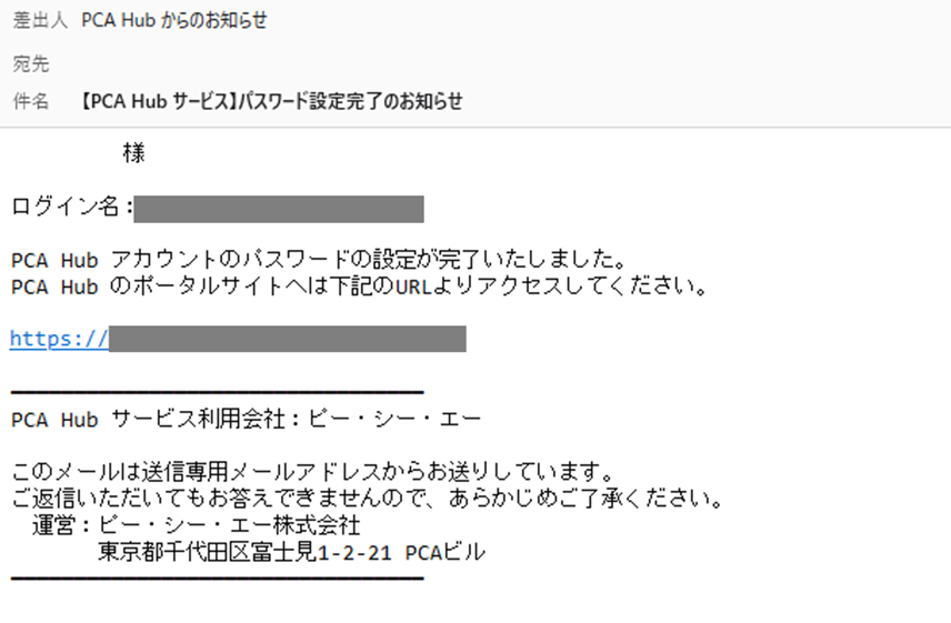 【PCA Hubサービス】パスワード設定完了が送信されます。 |
