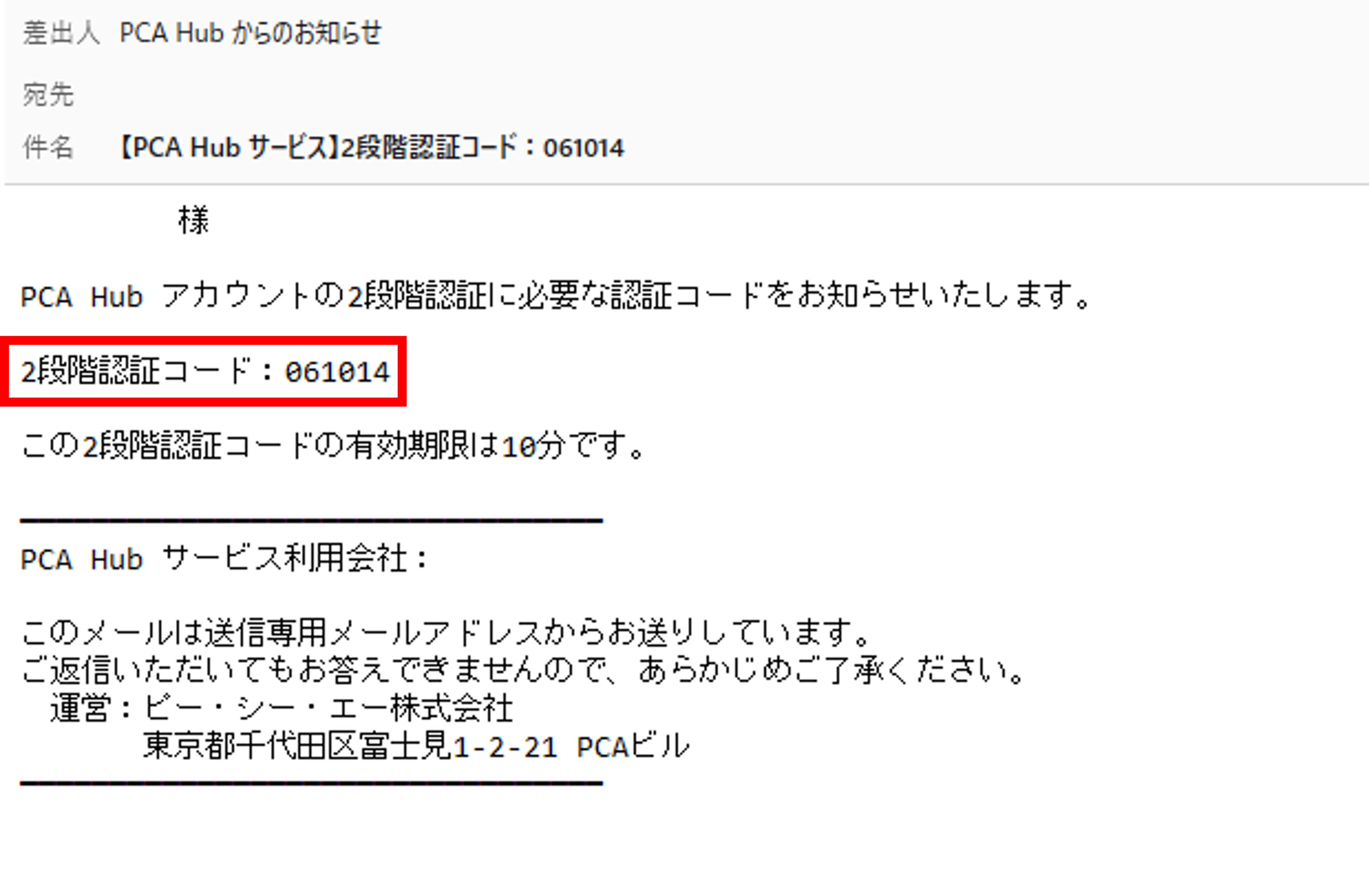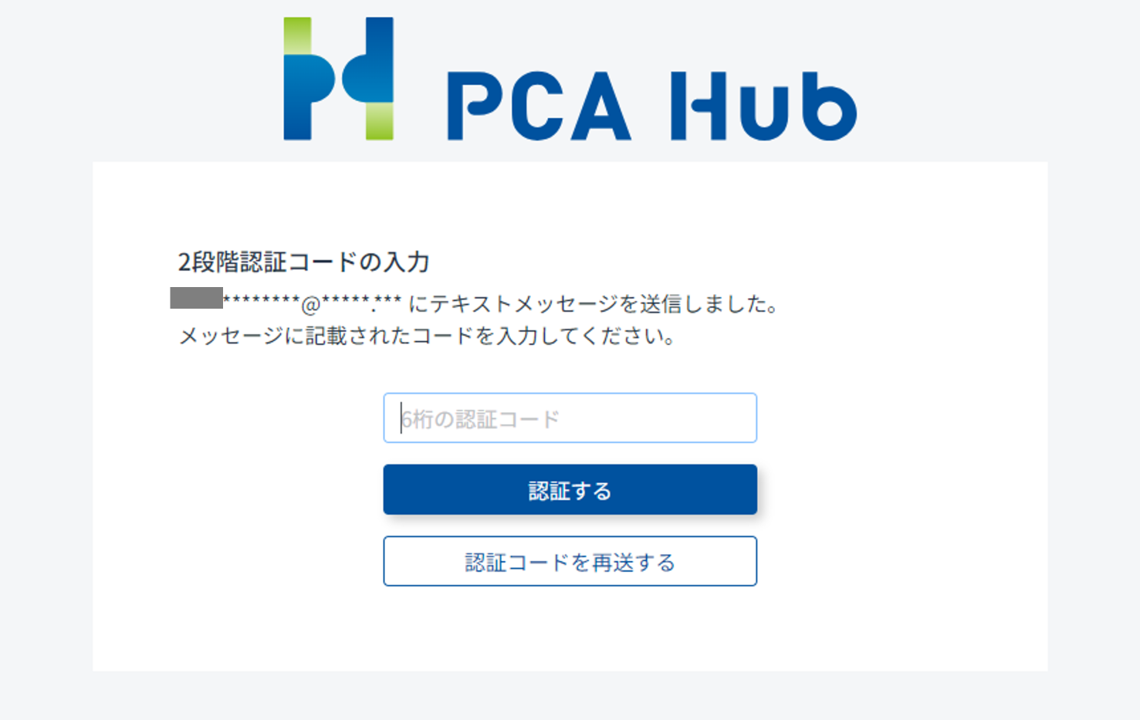 【PCA Hubサービス】2段階認証コードが送信されます。 |