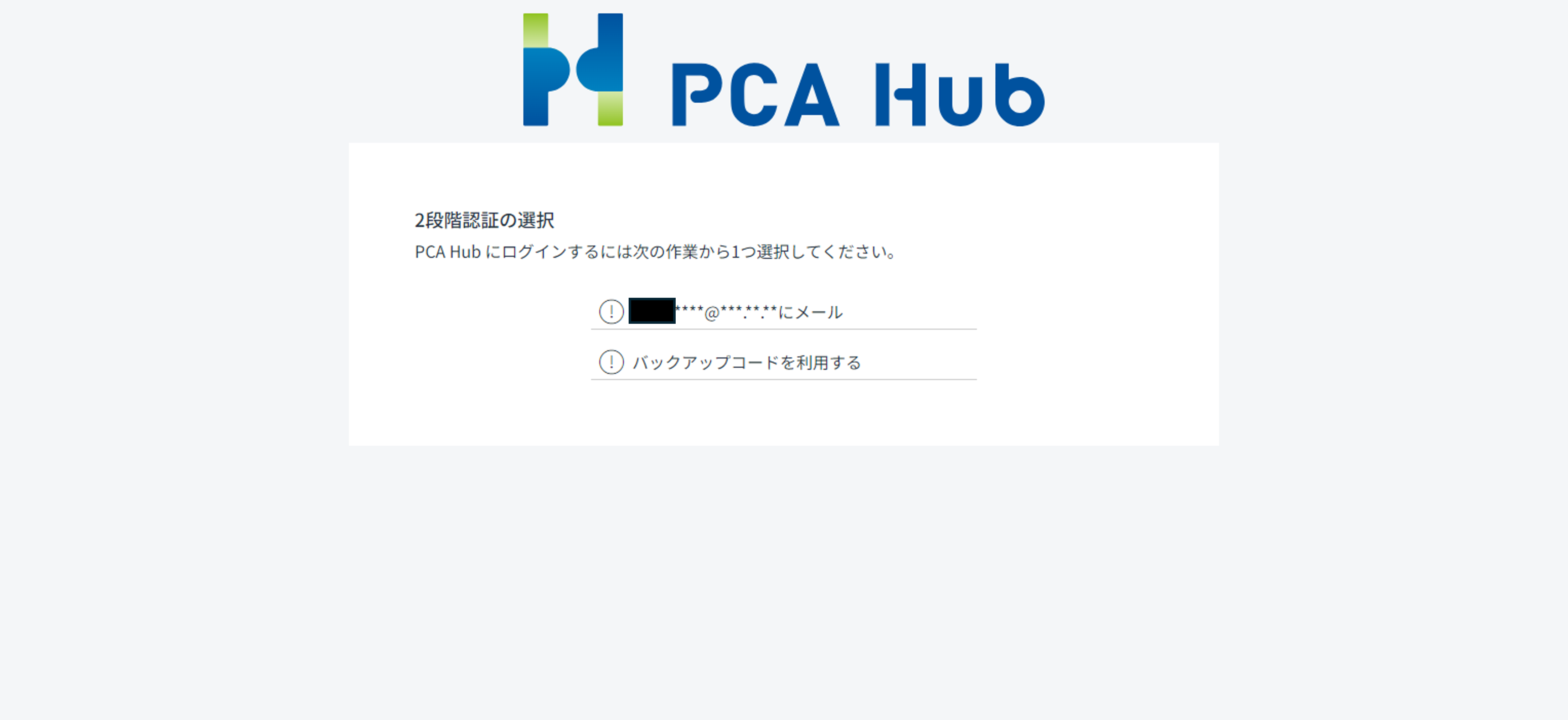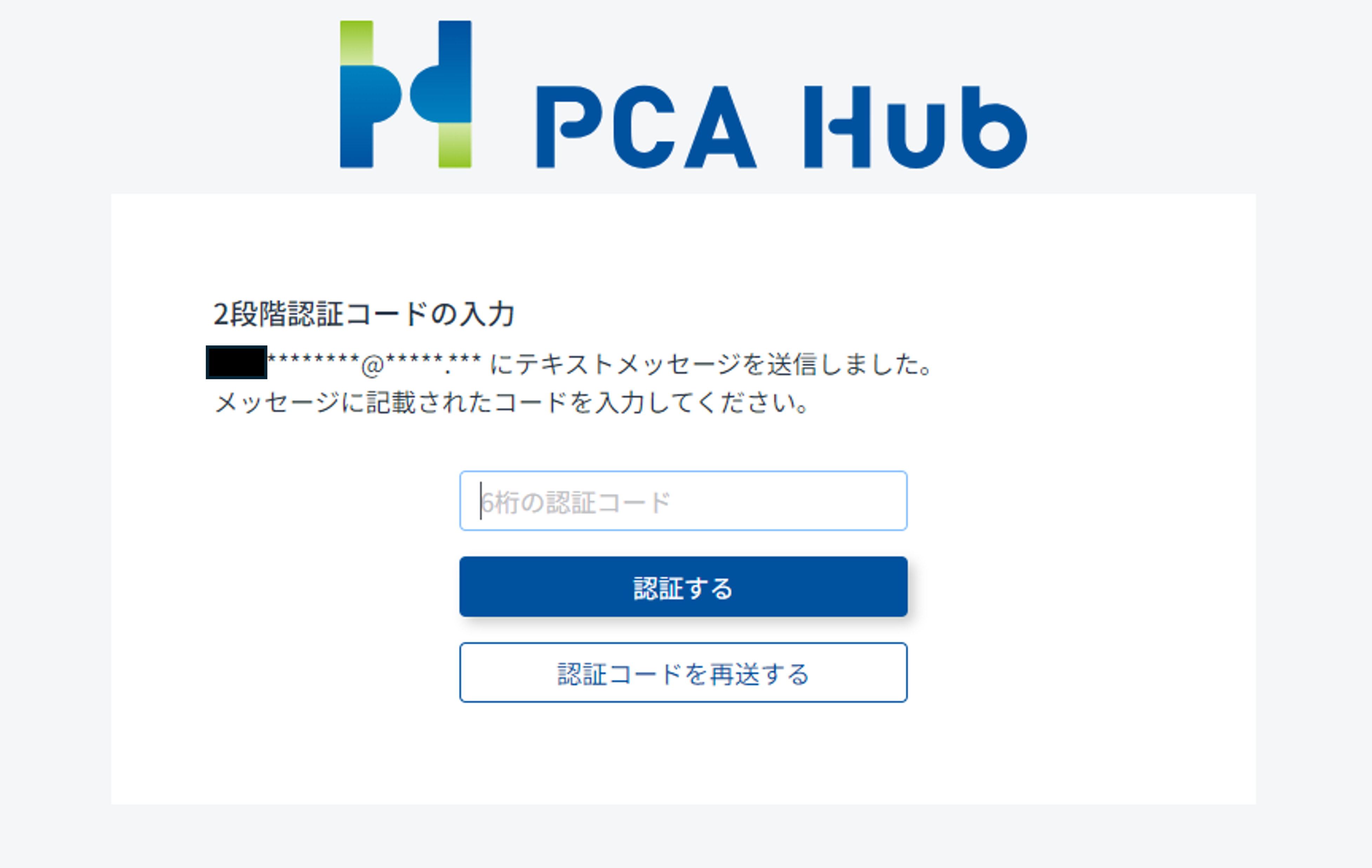 【PCA Hubサービス】2段階認証コードが送信されます。 |