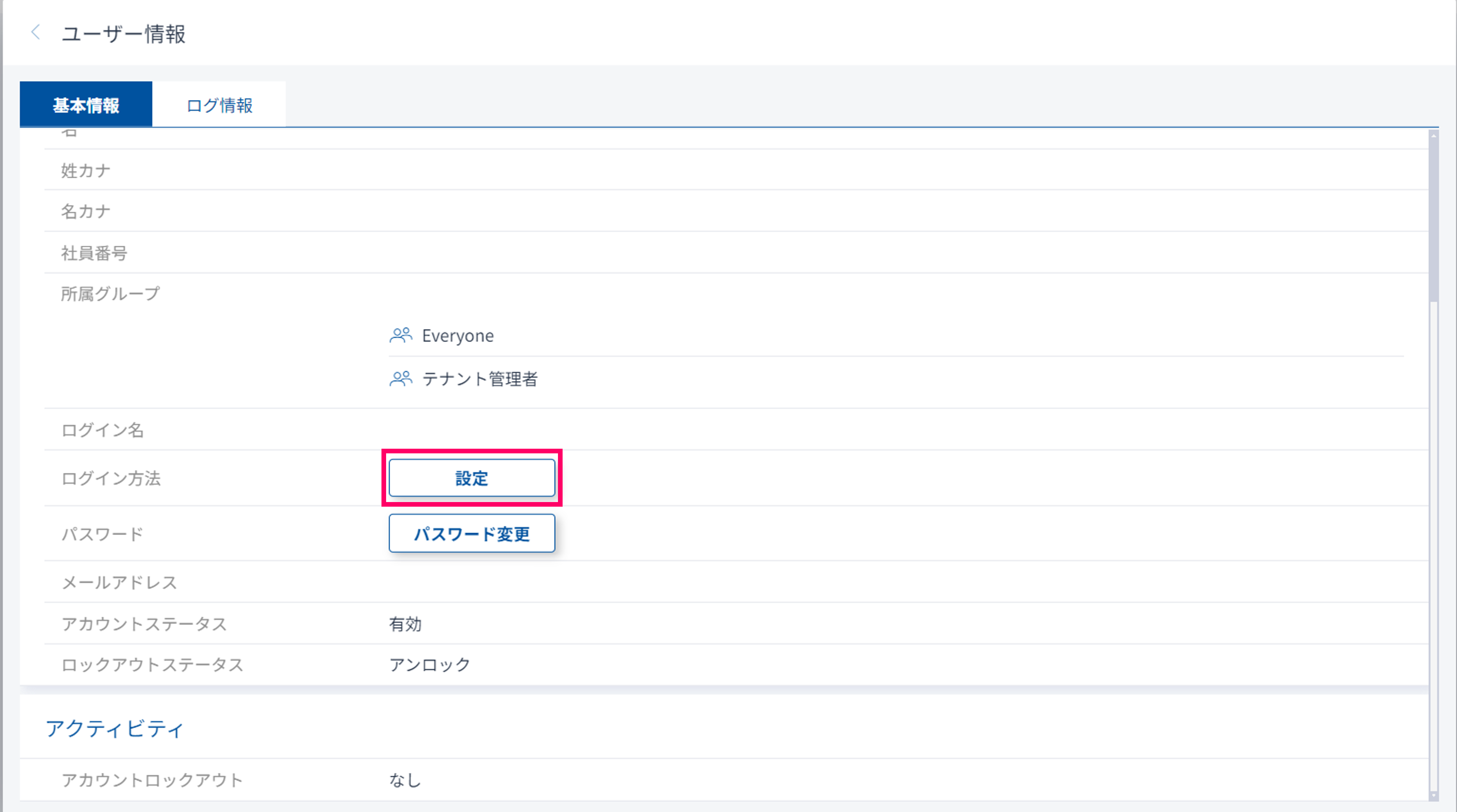 (1) 氏名をクリックしてメニューを表示します。「ユーザー情報」を選択します。