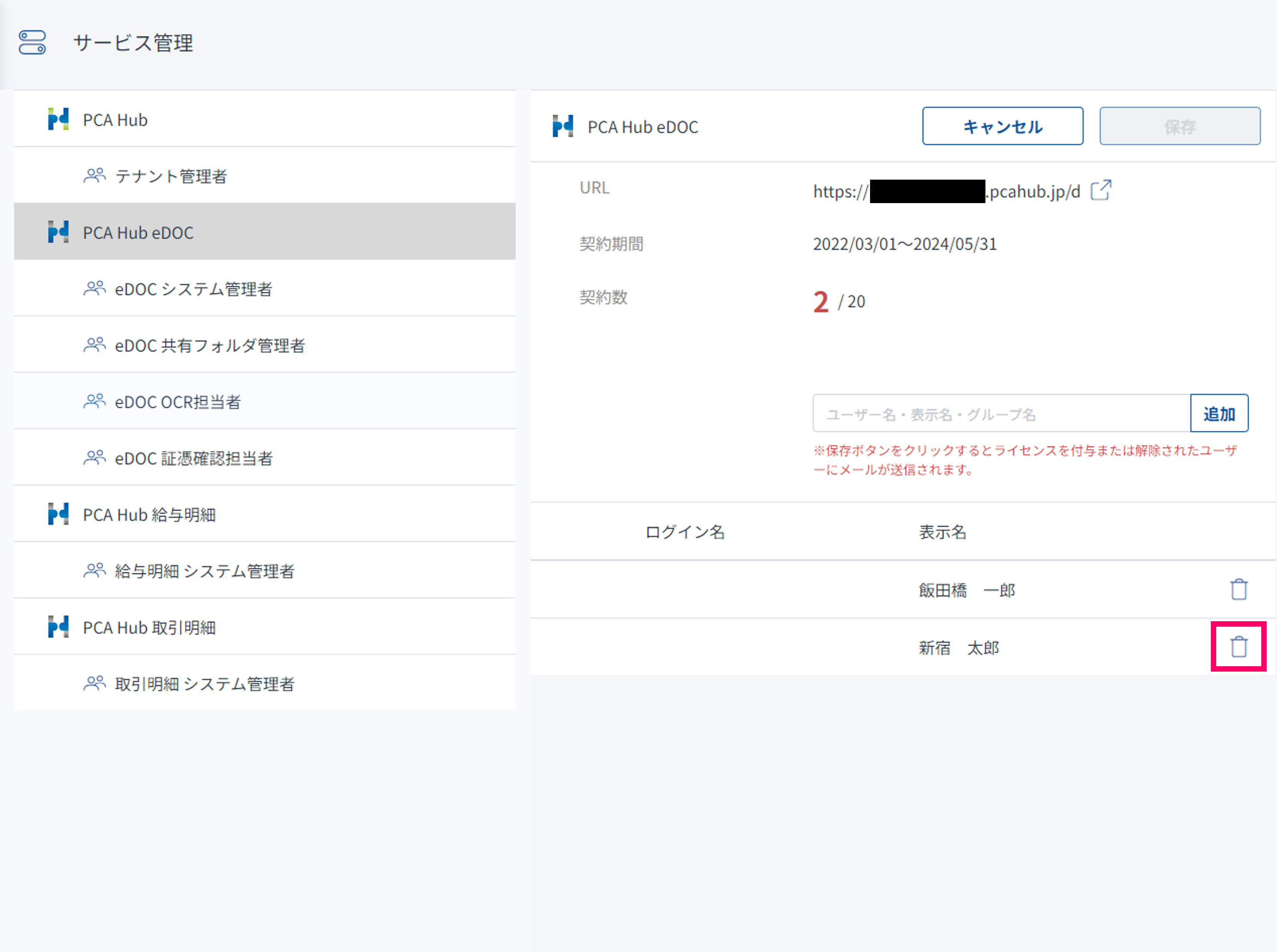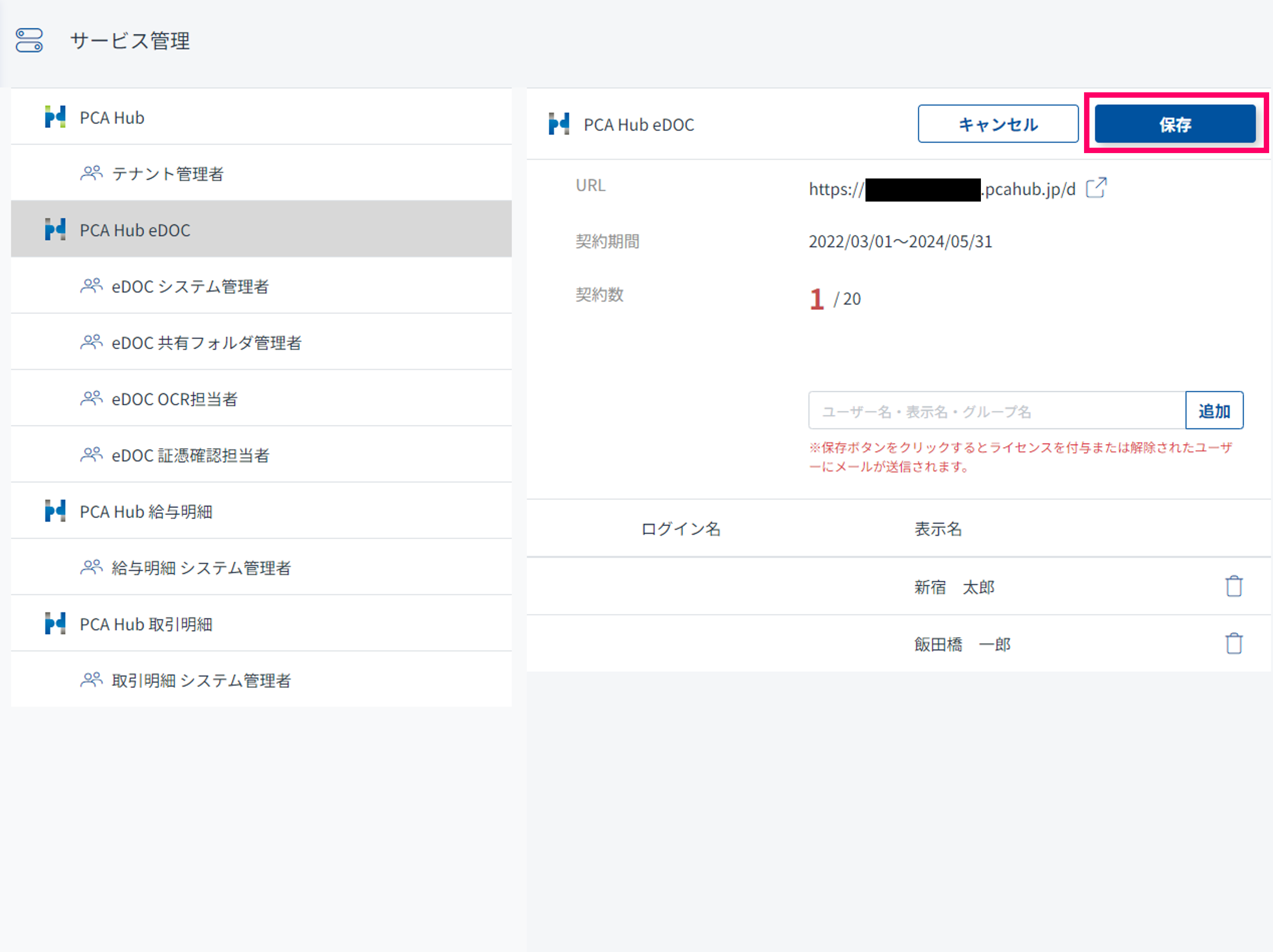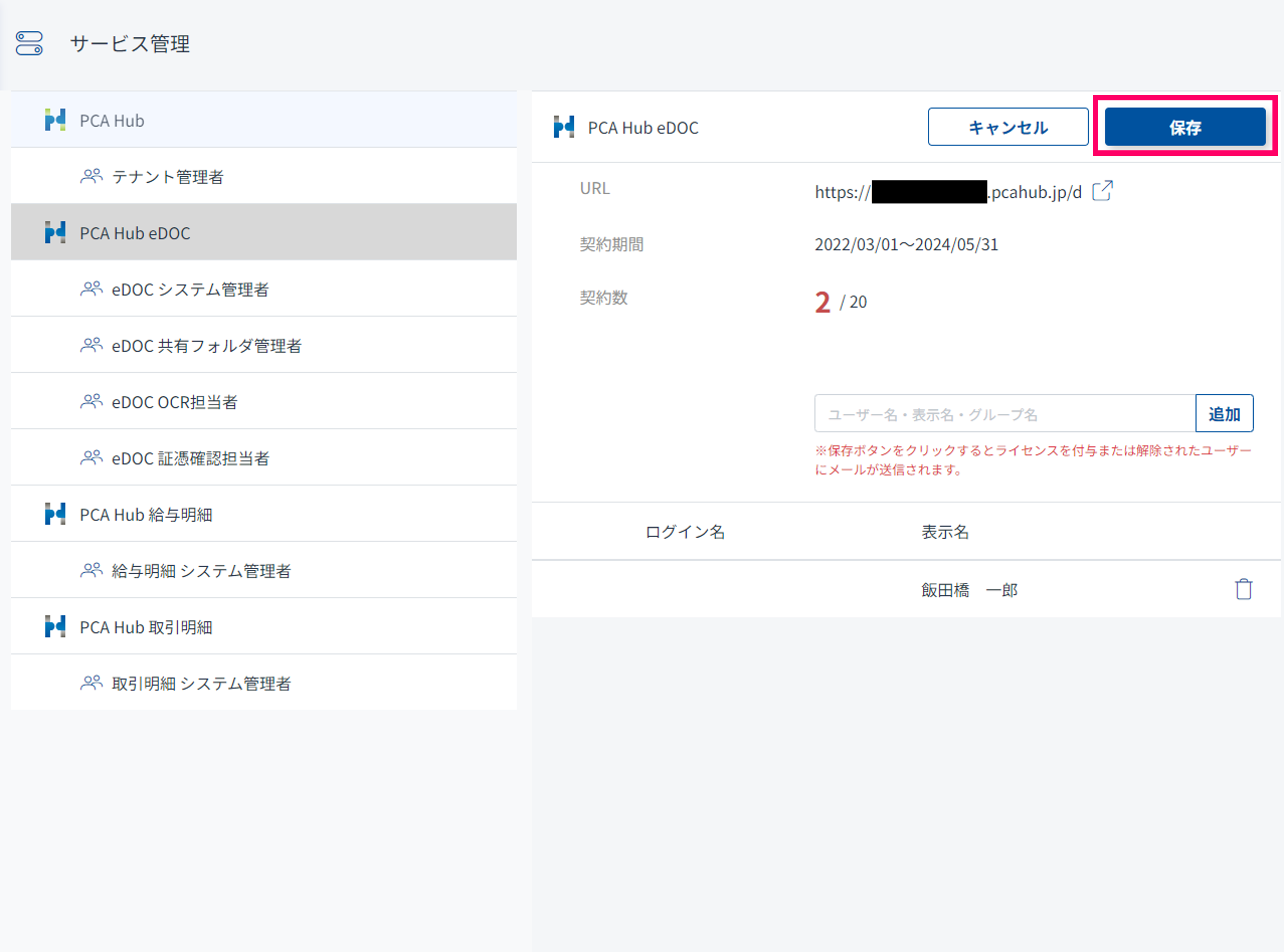 (3) ユーザーのライセンスが解除されたのを確認後、「保存」をクリックします。