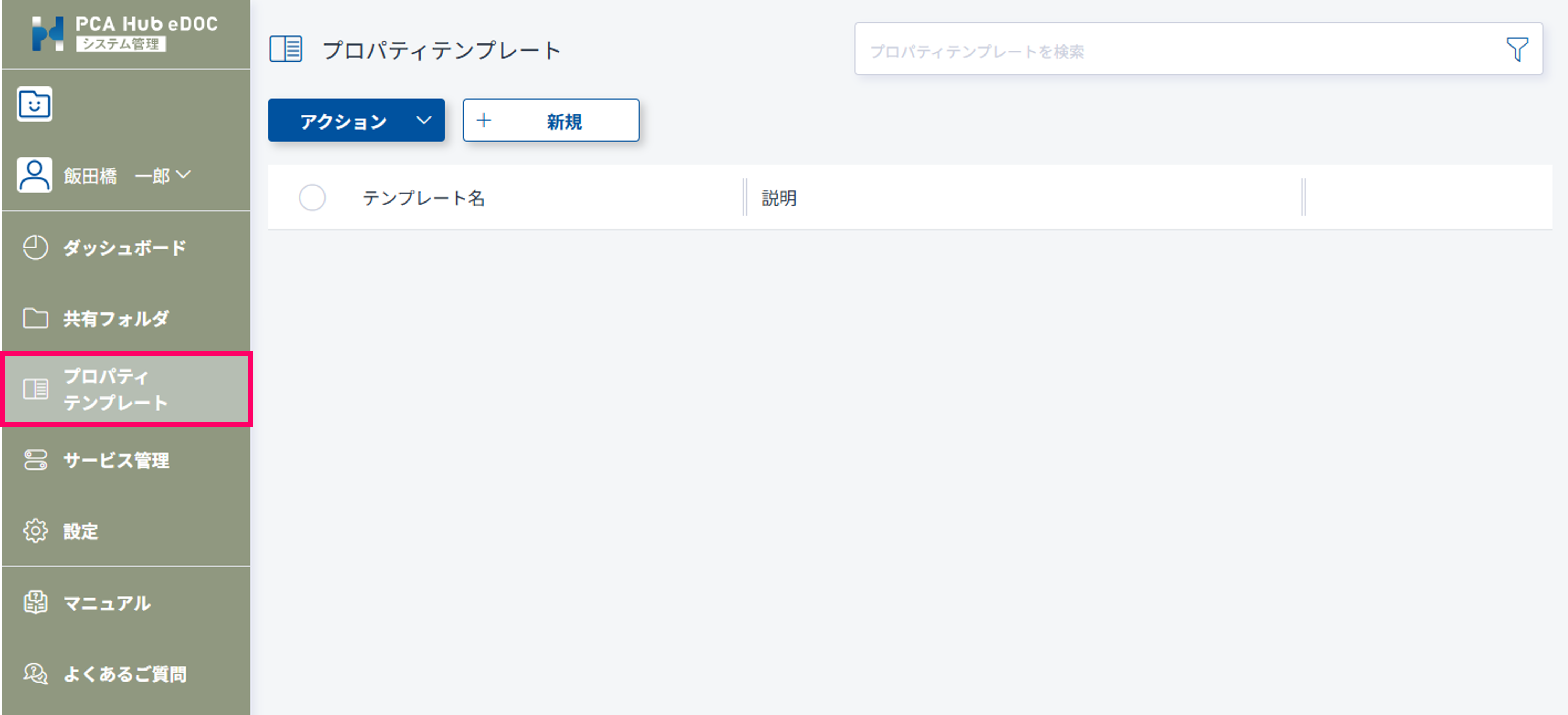 eDOCシステム管理メニューの「プロパティテンプレート」をクリックします。